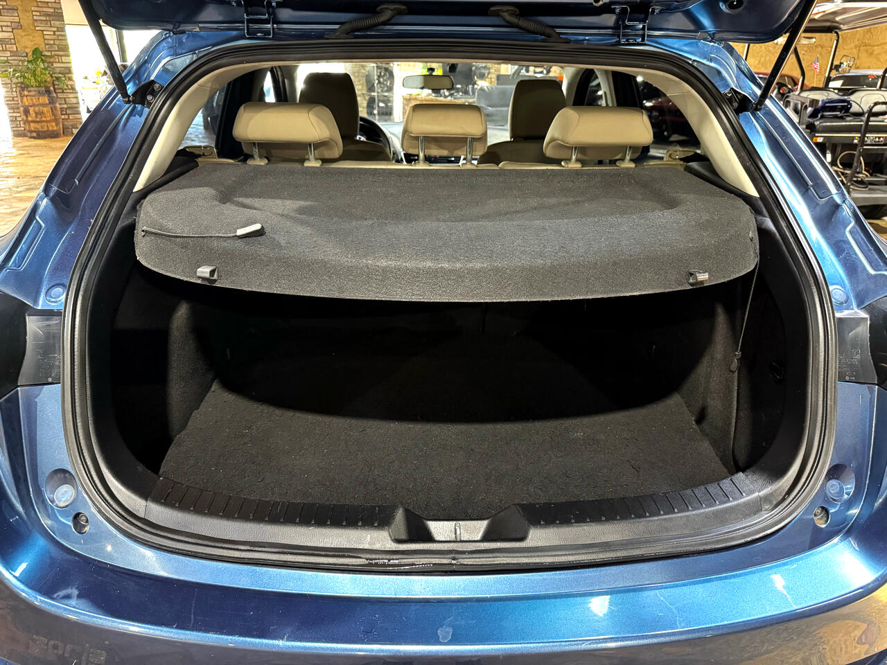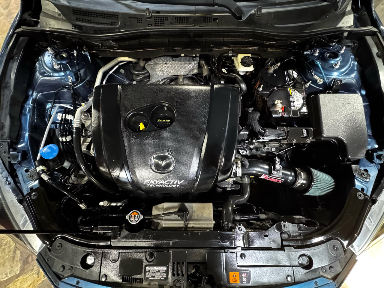The exterior of this Mazda3 is just as impressive as the interior, with a striking Blue color that is sure to turn heads wherever you go. The compact spare tire mounted inside under the cargo ensures you're always prepared for unexpected emergencies. Plus, the sleek design, body-colored accents, and halogen daytime running headlights give this car a modern and sporty look.