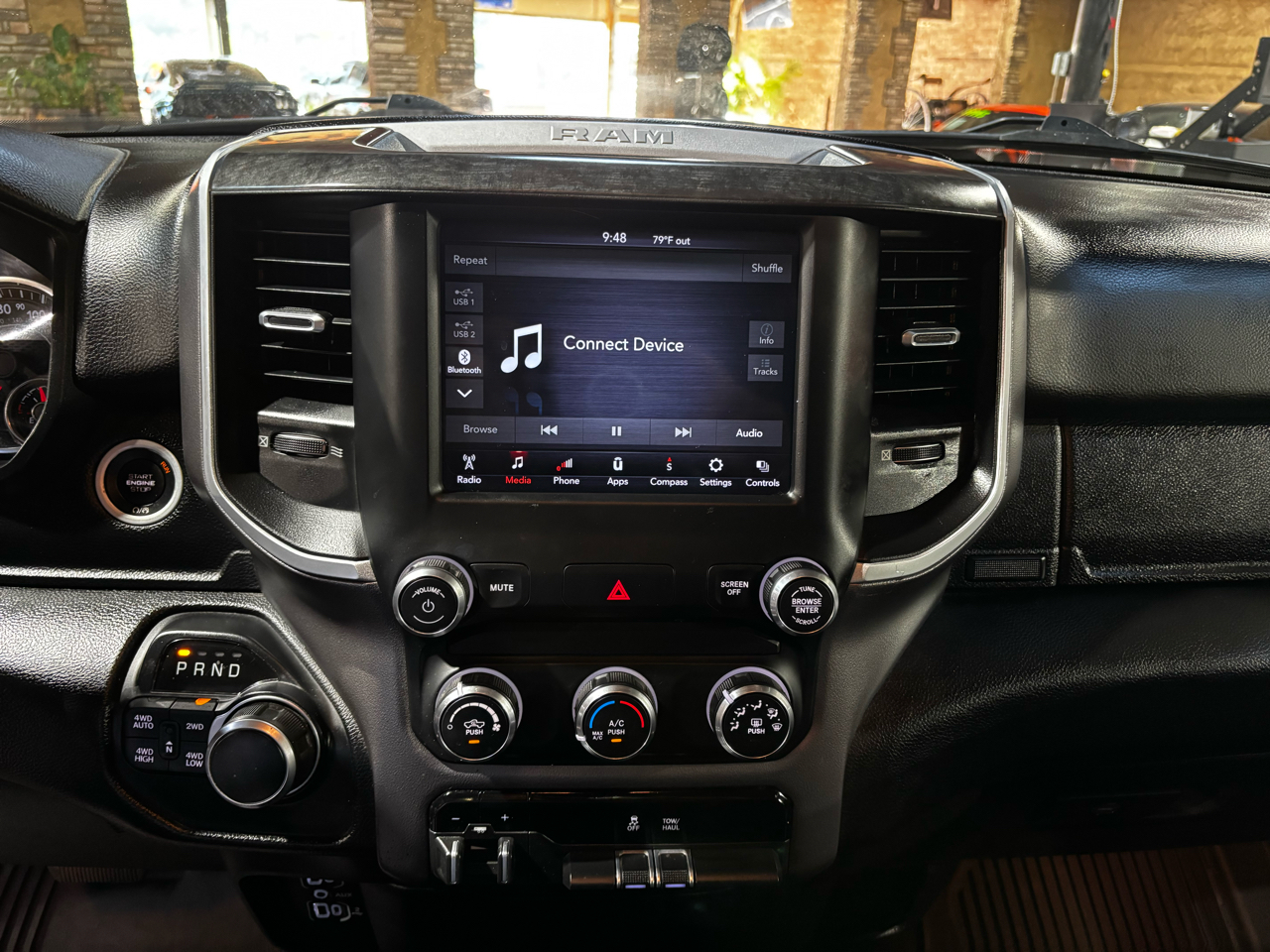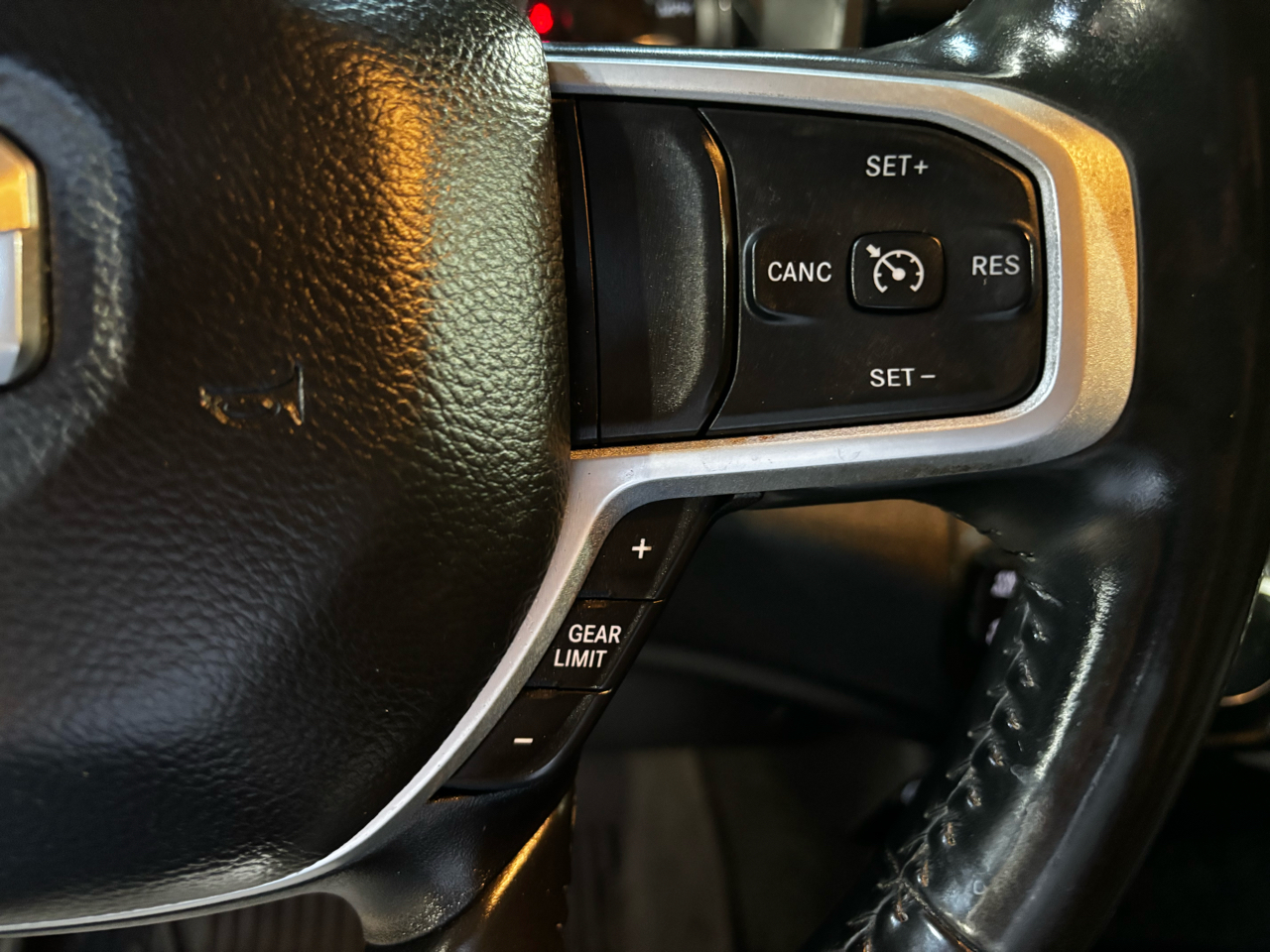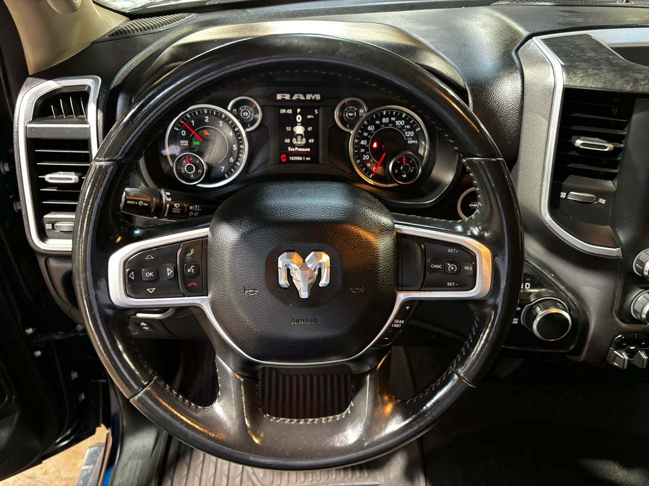 Safety is a top priority in this RAM 1500, with features like Side Impact Beams, Tire Specific Low Tire Pressure Warning, and a ParkView Back-Up Camera to give you peace of mind on the road. You can rest assured knowing that this truck has everything you need to stay safe and secure during your travels.
