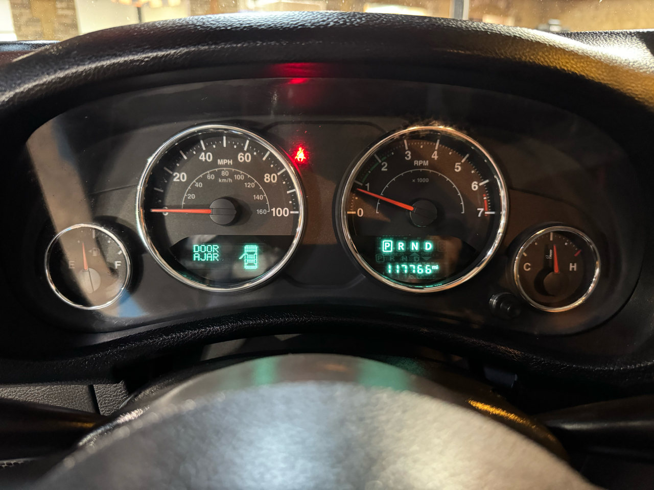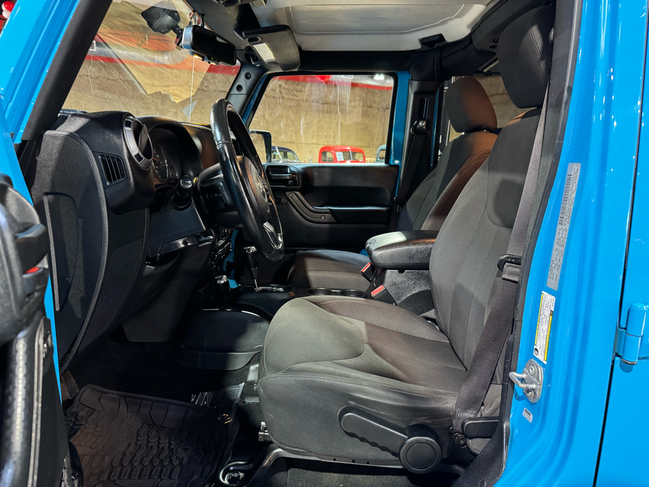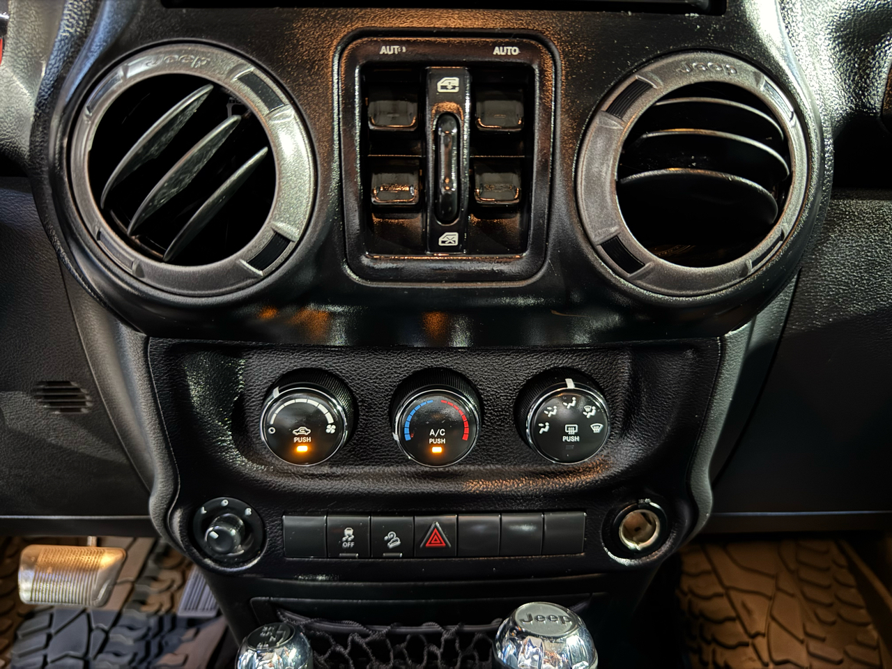 In terms of convenience, this Wrangler offers features like cruise control, manual air conditioning, and a locking glove box for storing your valuables. The interior trim with metal-look accents gives the cabin a sleek and modern feel. And with 2 12V DC power outlets, you'll never have to worry about running out of battery on your devices.