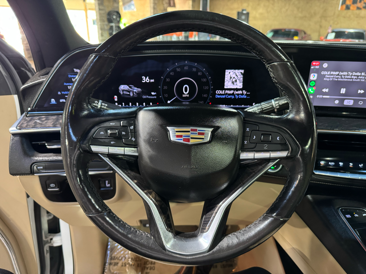 Step inside the opulent cabin and sink into the plush, power-adjustable seats with lumbar support, offering unparalleled comfort on any journey. Stay connected with the Cadillac 4G LTE Wi-Fi Hotspot and enjoy crystal-clear audio with the HD Radio. The Augmented Reality live image display on the 14.2" diagonal Cluster Display adds a futuristic touch to your driving experience, overlaying navigational information for easy guidance.