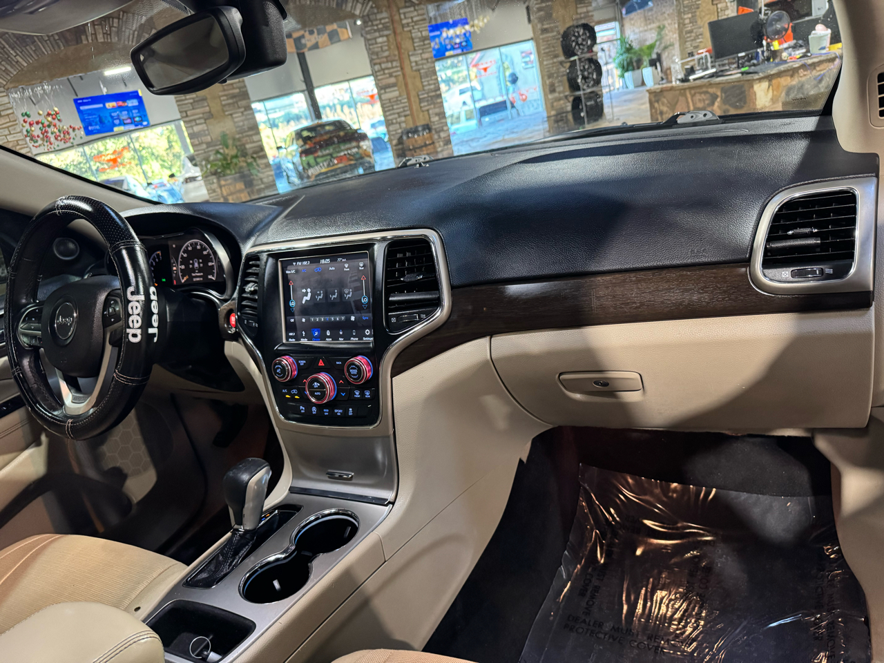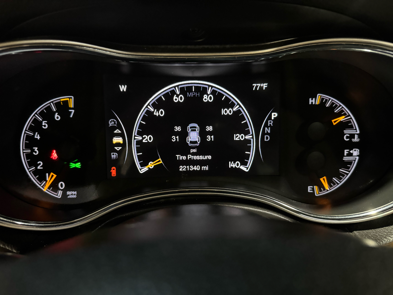 Hop inside this Jeep and you'll find yourself surrounded by convenience and luxury. The interior boasts a modern design with leather accents and simulated wood trim, creating a sophisticated atmosphere for all your travels. With dual-zone automatic air conditioning and heated front seats, you'll be riding in comfort no matter the weather outside.