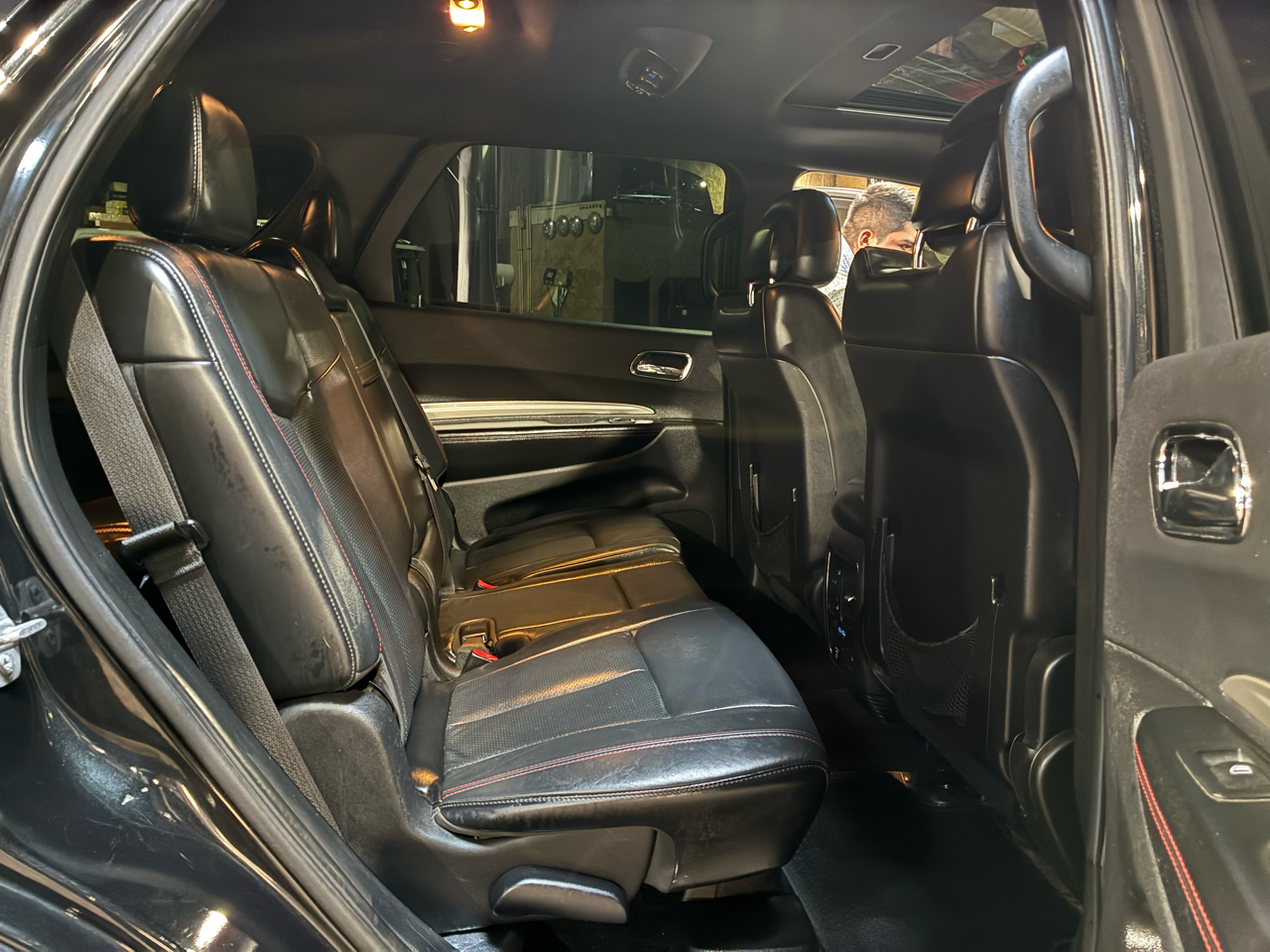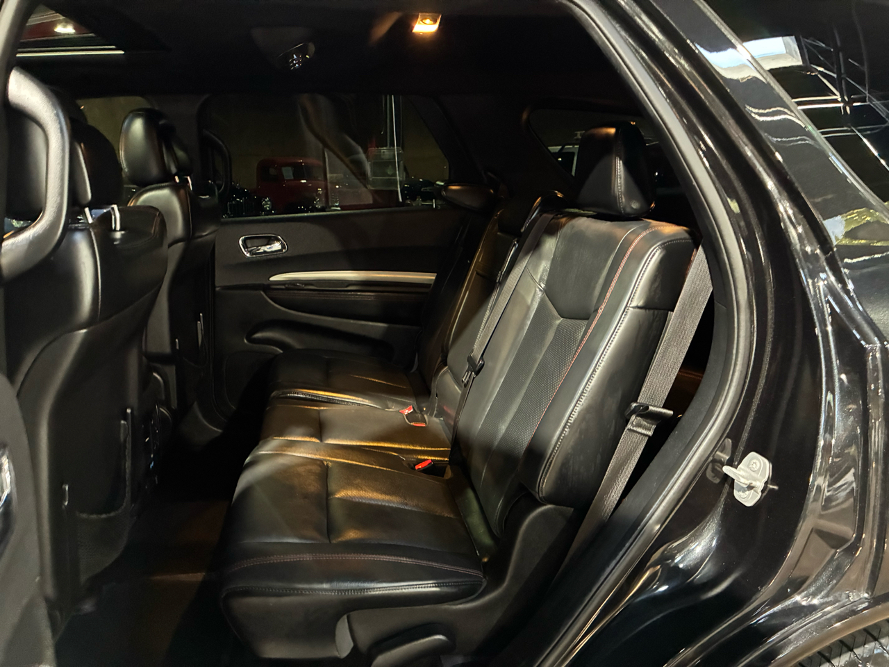 Step inside the cabin and you'll find a spacious and luxurious interior that's perfect for both driver and passengers. The fixed 50-50 split-bench vinyl 3rd row seat and adjustable head restraints provide comfortable seating for everyone. Whether you're going on a road trip or just commuting to work, this Durango ensures that everyone is traveling in style and comfort.