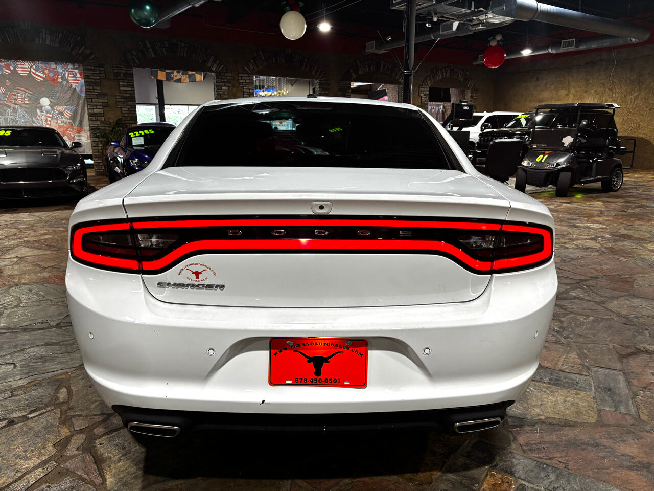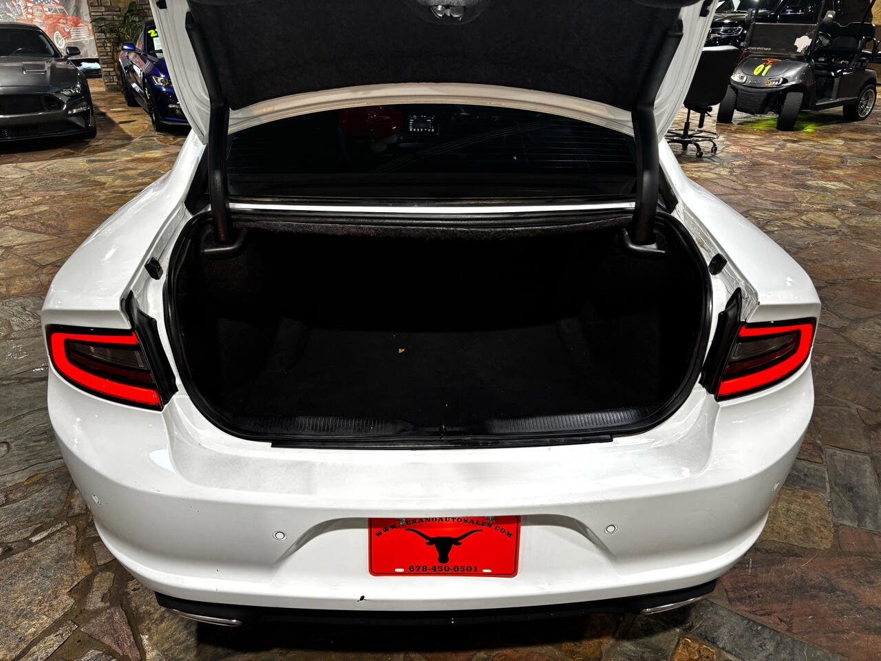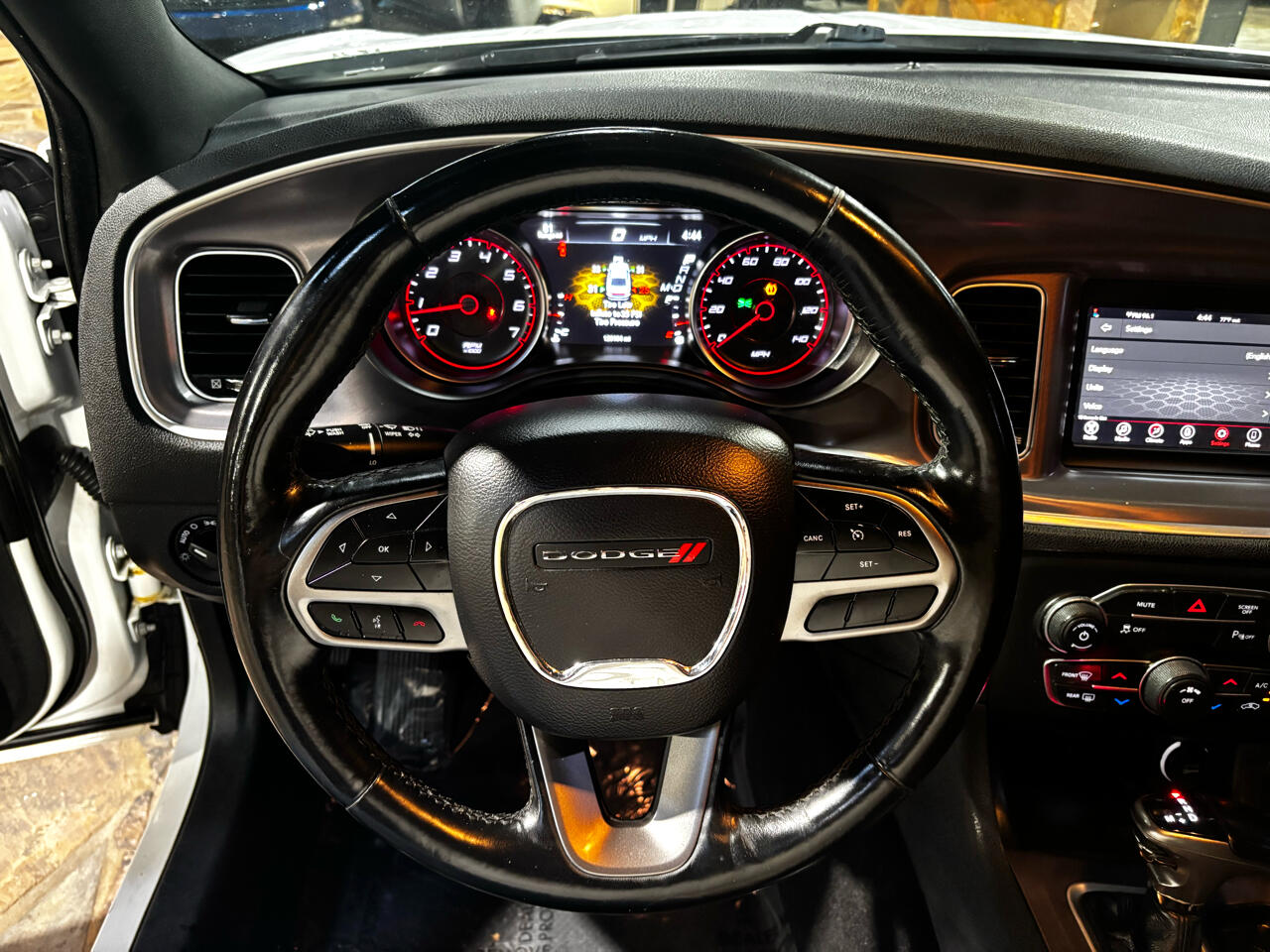Not only does this Dodge Charger boast impressive performance capabilities, but it also exudes a sense of modern elegance with its striking white exterior and stylish body-colored accents. From the sleek front grille to the dual exhaust with chrome tailpipe finisher, this car is sure to turn heads wherever you go.