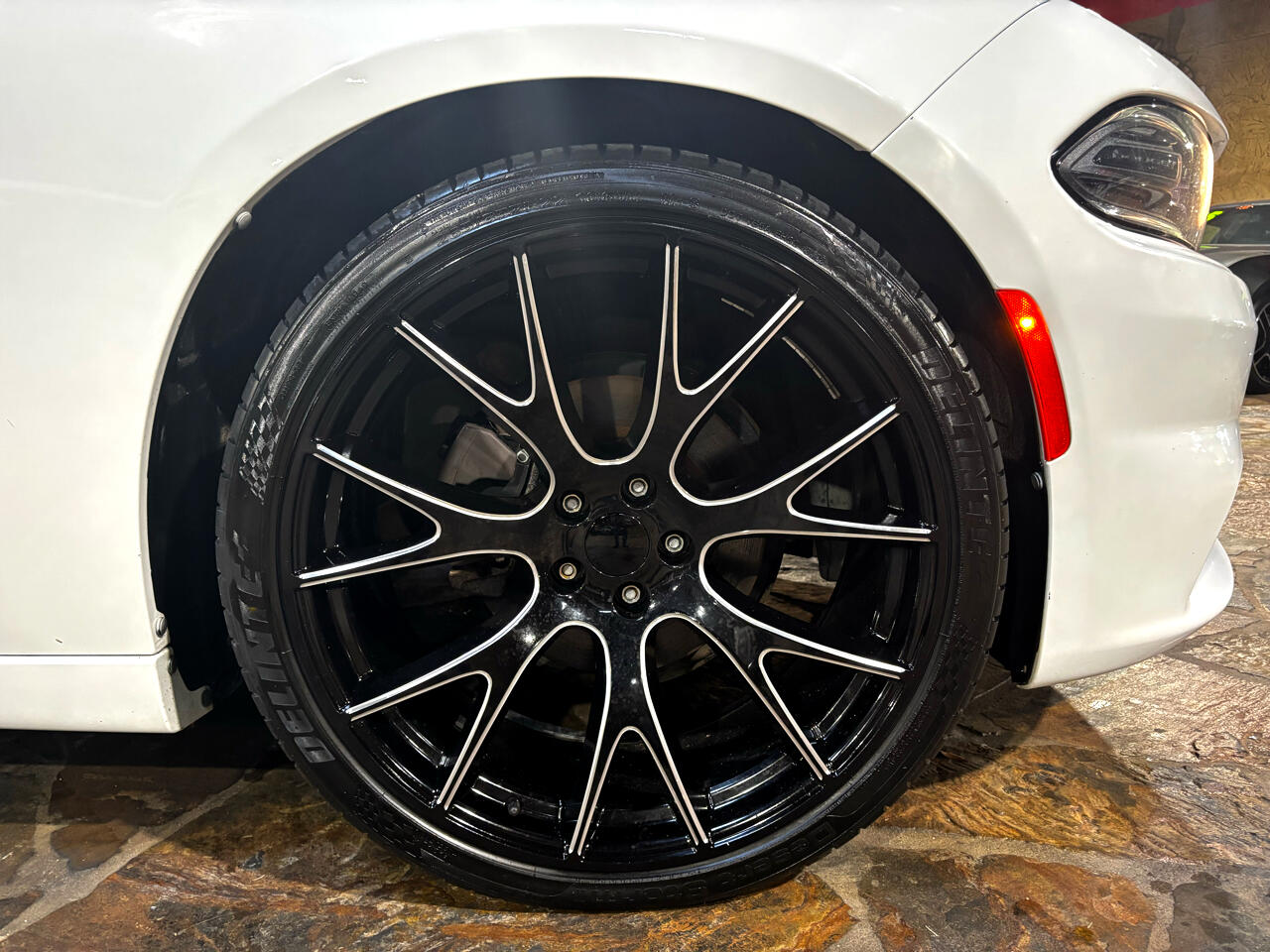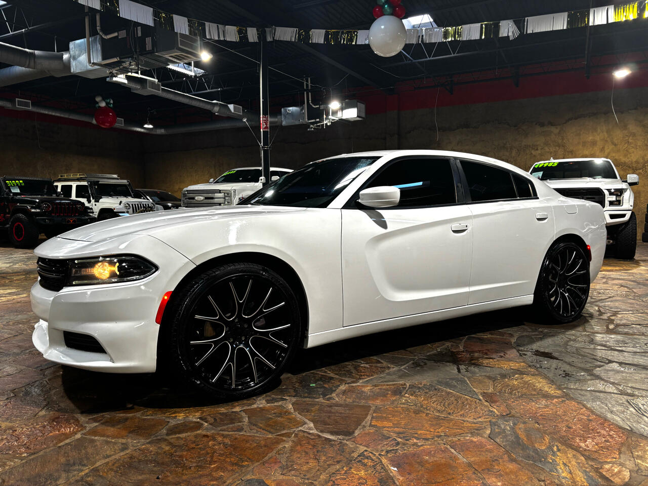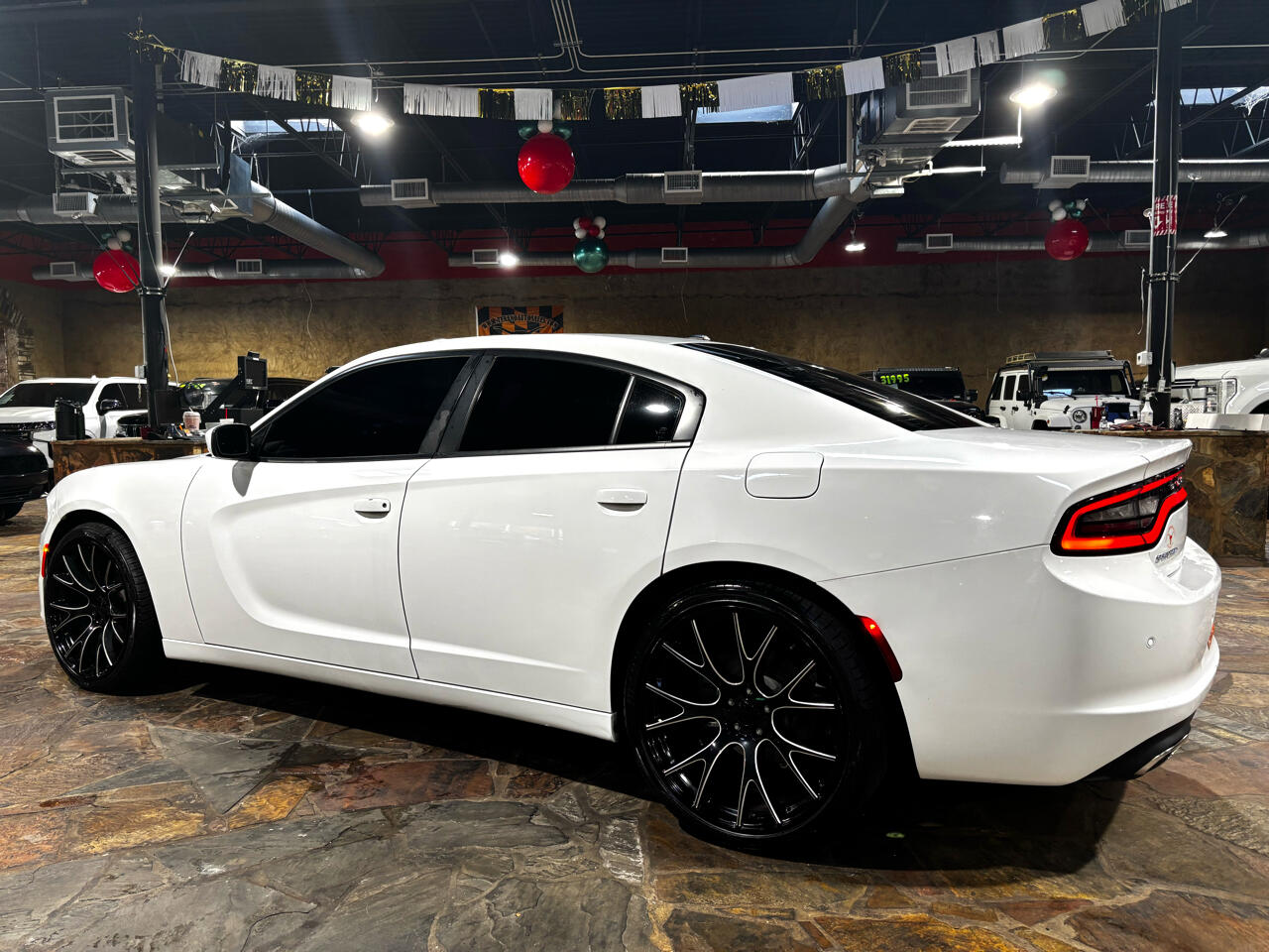 Not only does this Dodge Charger boast impressive performance capabilities, but it also exudes a sense of modern elegance with its striking white exterior and stylish body-colored accents. From the sleek front grille to the dual exhaust with chrome tailpipe finisher, this car is sure to turn heads wherever you go.