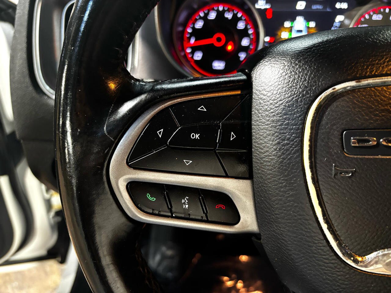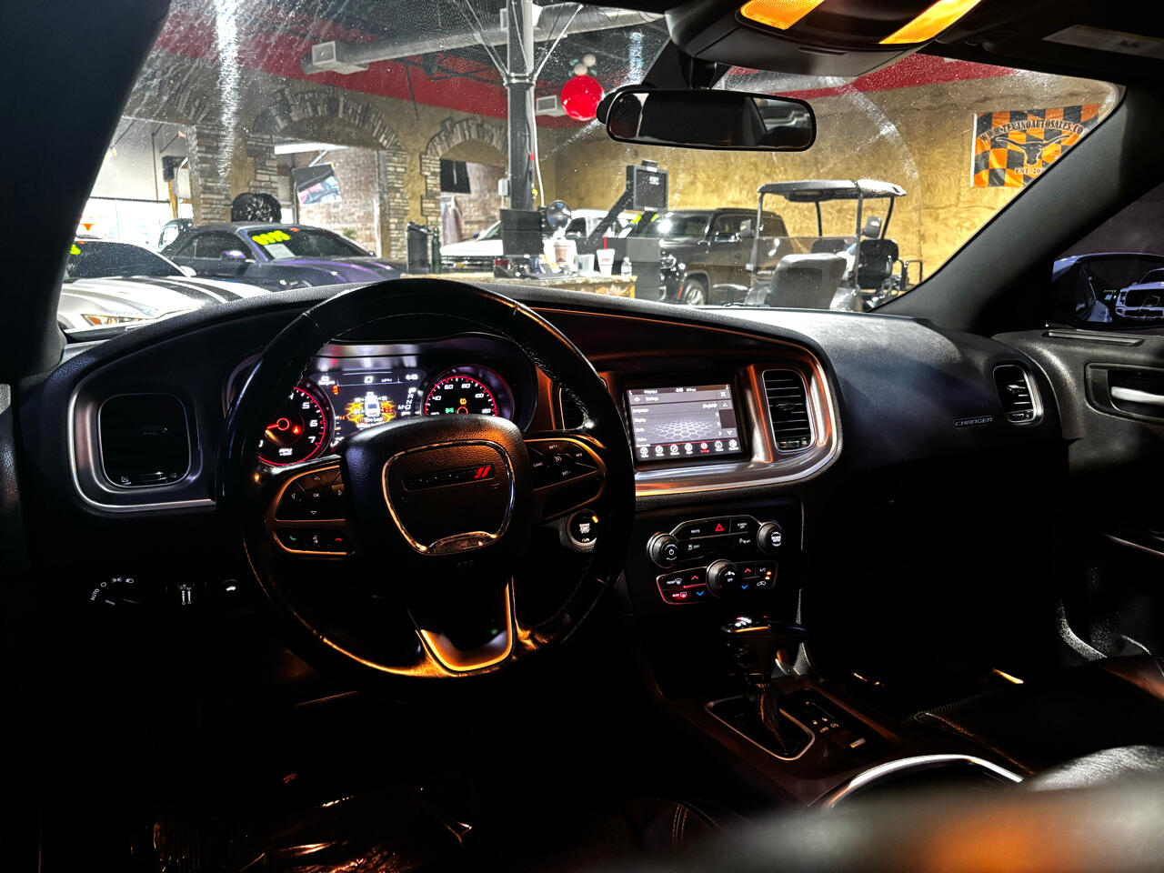 Step inside and you'll find a spacious and comfortable interior that's perfect for all your adventures. The cloth seats are both supportive and plush, while the leather-wrapped steering wheel adds a touch of luxury to every drive. Whether you're running errands around town or embarking on a long road trip, this Charger has got you covered with its ample cargo space and convenient storage options.